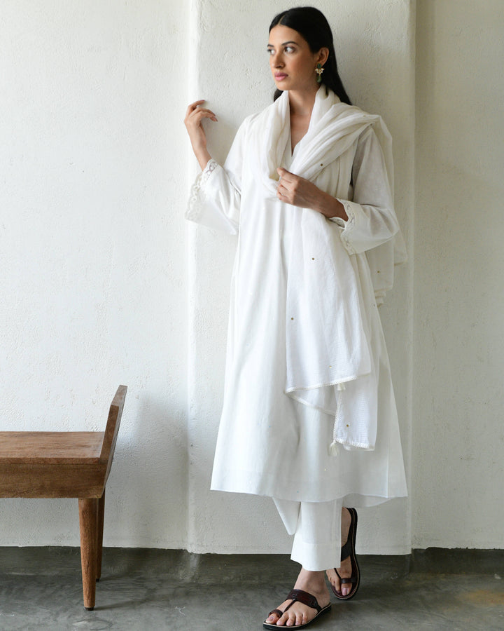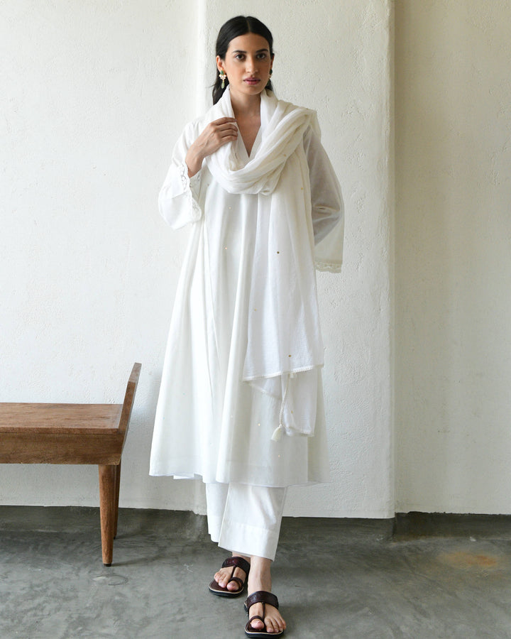 KHARI WHITE A-LINE ANARKALI SET OF 3