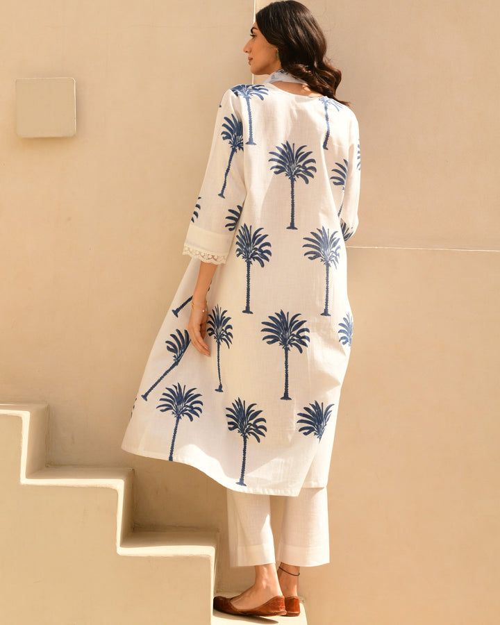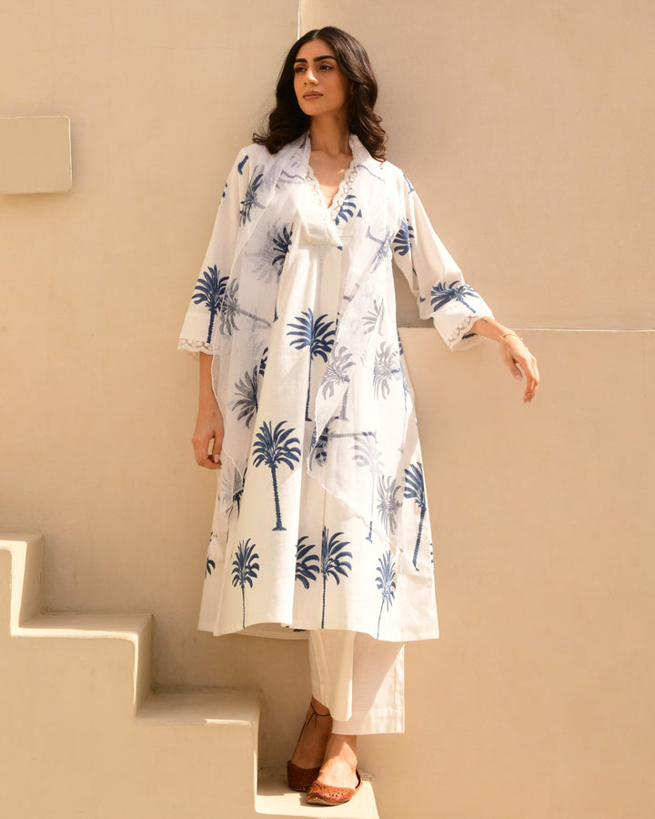 COTTON PALMS- Escape to a tropical paradise this summer with our handblock-printed palm trees on organic cotton . Soft, breathable, and effortlessly chic, these timeless pieces transport you to a haven of serenity and elegance, perfect for warm weather escapades.".