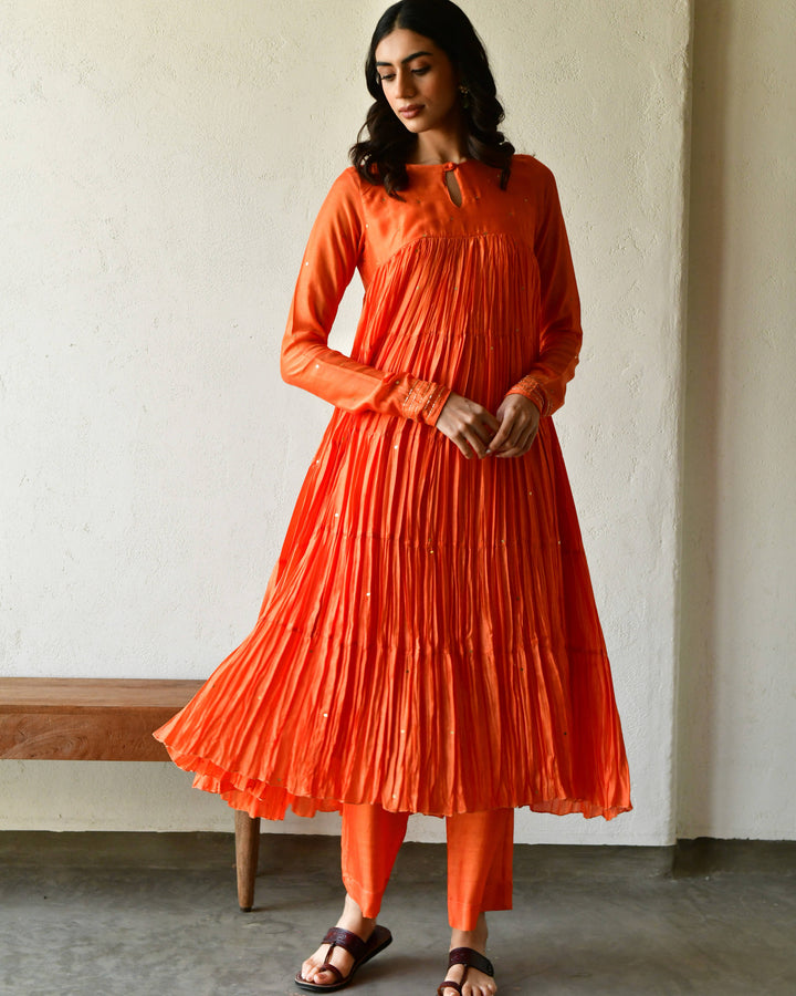 Rang rust orange tier anarkali set of 3