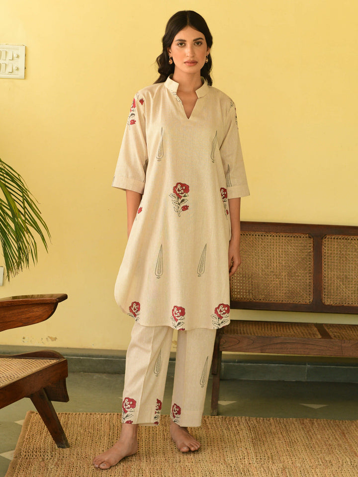 Sukoon beige kurta set of 2